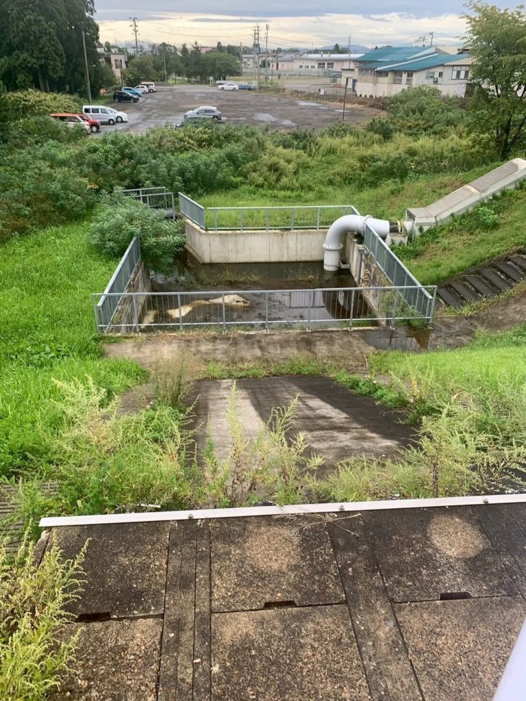 『学会の次の日に秋田県大仙市大曲で雄物川の巡検をした。地名(大曲)の由来にもなっている通り、昔、雄物川はこの地域で大きく蛇行していたため、氾濫防止の観点から河川改修工事が昭和28年から行われた。改修前にもともと河川だったと思われる場所にも訪れ、現在でも雨が降ると水が溜まりやすくなることから、雨水を川へ放出するシステムが作られていることが分かった。普段九州地方にいる私たちにとって東北地方は滅多に訪れない場所であるが、実際に現地で河川についての知見を広げられたことは大きな学びとなった。』